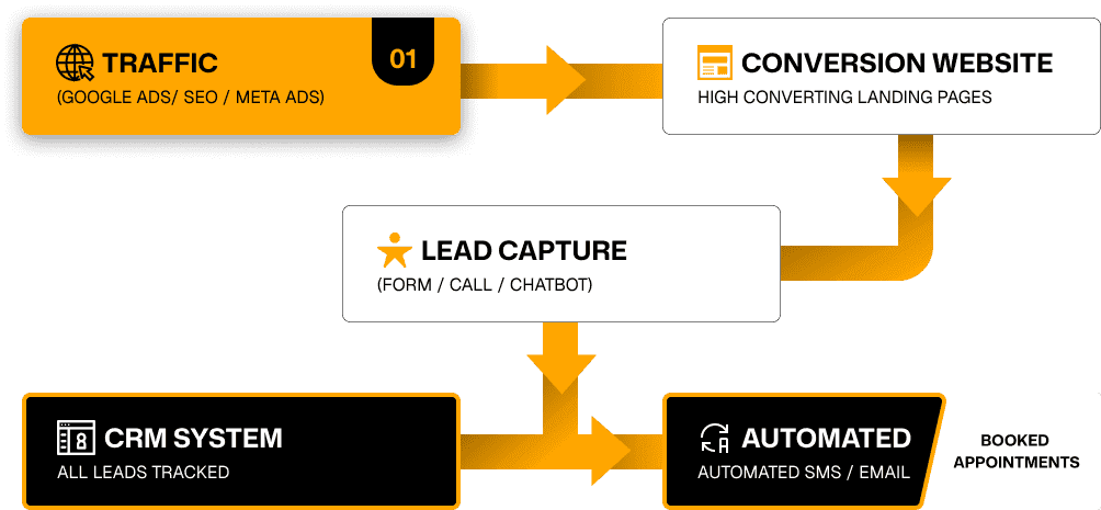 Most agencies deliver a website and disappear. We build a full lead system: website + tracking + conversion strategy + traffic.